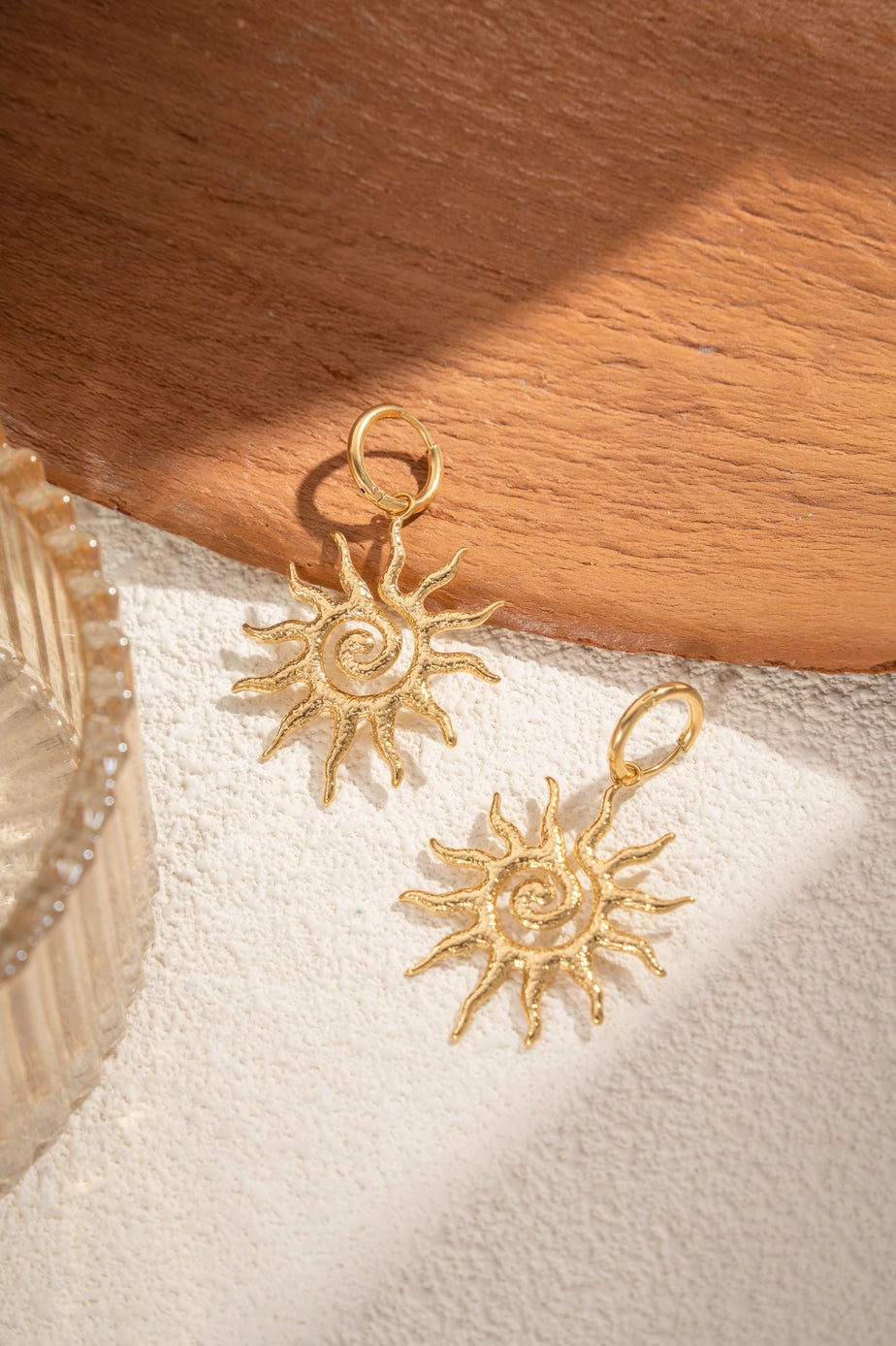 Shine your style with these sun hoop earrings in gold stainless steel. Elegant, refined, and durable, they brighten up your everyday outfits as well as your evenings. Comfortable and lightweight, they maintain their shine over time. A trendy and timeless piece of jewelry, symbolizing light and positive energy to wear on any occasion. In Stainless Steel, Nickel-Free, Cadmium-Free, and Lead Salt-Free.